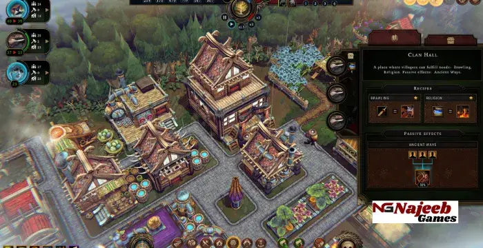 Each settlement features different races such as humans, beavers, lizards, foxes, or harpies, each with unique preferences and abilities. Balancing their needs is crucial, as unhappy citizens reduce resolve and can abandon the settlement.
