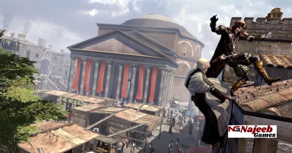 Assassin’s Creed: Brotherhood features stunning graphics that bring the intricate details of Rome to life, from the grandeur of its architecture to the vibrant life on its streets.