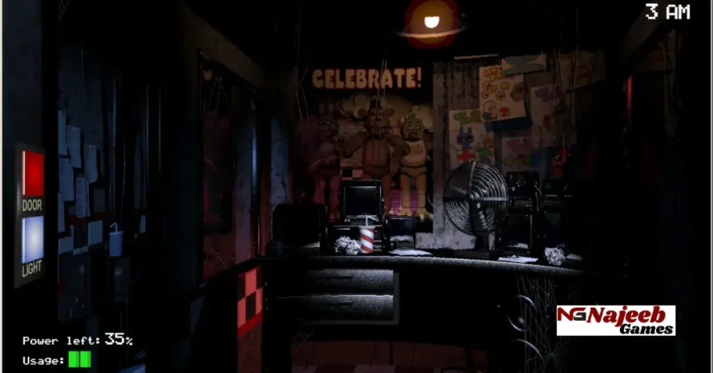The primary objective in Five Nights at Freddy's is to survive each night from midnight to 6 AM without being caught by the animatronics. Players are limited in their resources, such as power supply for lights and doors, which adds to the tension: