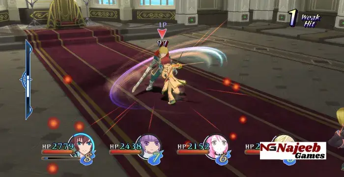 Tales of Graces f Remastered features one of the most refined combat systems in the Tales series. Battles take place in real time, allowing players to freely move characters, chain attacks, and unleash powerful abilities. The combat emphasizes timing, positioning, and combo mastery rather than turn-based mechanics.